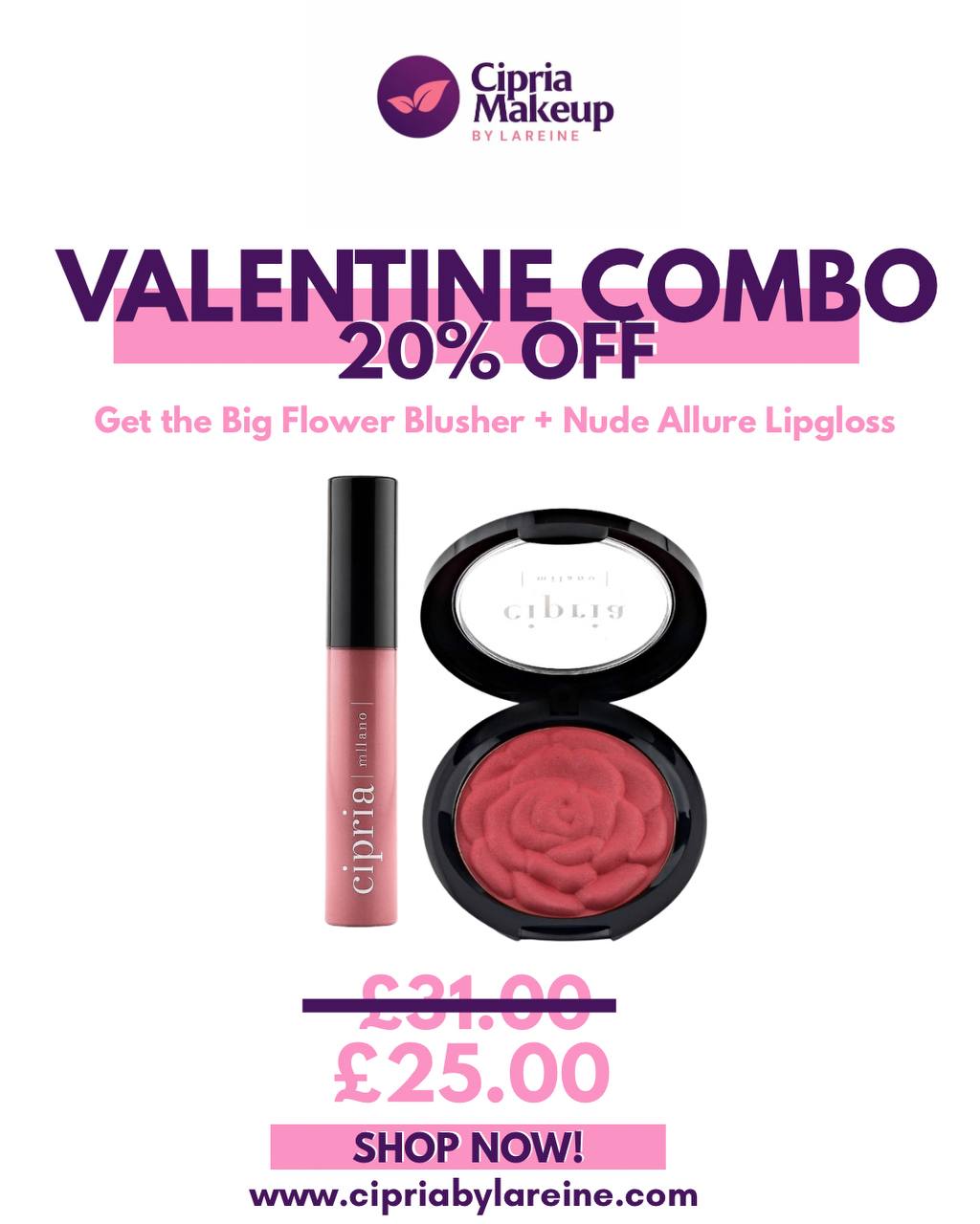 Treat yourself to radiance this Valentine’s! Our Big Flower Blusher and Nude Allure Lipgloss come together in this exclusive duo at 20% off. Gift yourself or your loved ones with this perfect pairing designed to give you a luminous look.